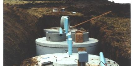 Seen here are three septic tanks properly installed before being backfilled.
